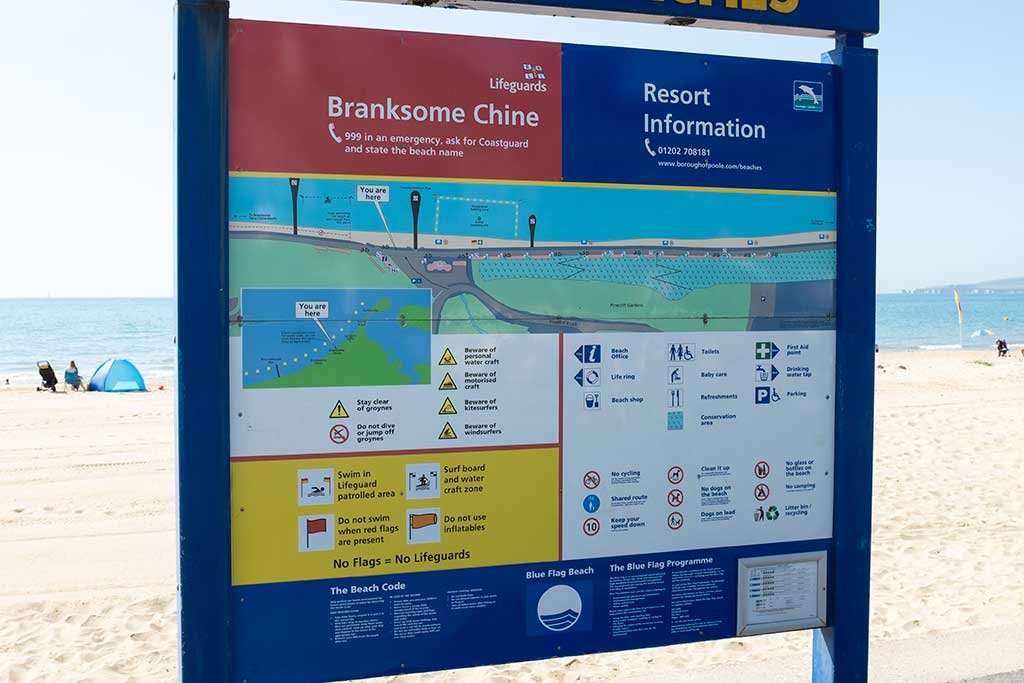 Branksome Chine Beach is a very popular Blue Flag beach that attracts both locals and visitors. It has wide golden sands with gently sloping entry into the water making it ideal for families with small children. There is an RNLI lifeguard station with beach patrols from May to September. Dogs aren’t allowed on this beach during this period either.