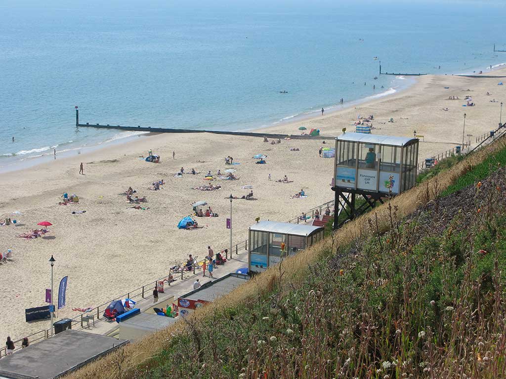 Access to the beach is by way of a long Zig-Zag path or by using the Fisherman’s Walk Cliff-Lift. The cliff-lift runs everyday between Easter and the end of October. (adult single £2.20, child under 16 £1.70, under 5s free, Family 2A+3C £7.20). Visit the web page www.bournemouth.co.uk for up to date information and ticket prices.