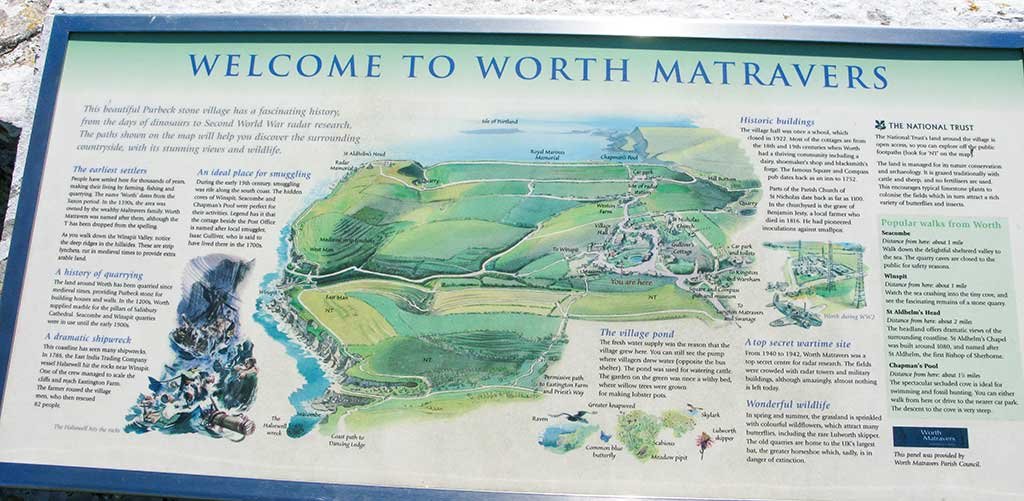Worth Matravers is popular with tourists and walkers in the summer months. The village lies just a few miles from the South West Coast Path and the UNESCO Jurassic Coast. It is the start of several excellent circular walks including trails to the cliff top quarries at Winspit and Seacombe. A walk out to St Aldhelm’s Head and Chapman’s Pool also offer superb coastal views. In the car park you’ll find some tourist information and useful maps showing the most popular walks. I’ve included photos of this information below that I’m sure you’ll find useful.