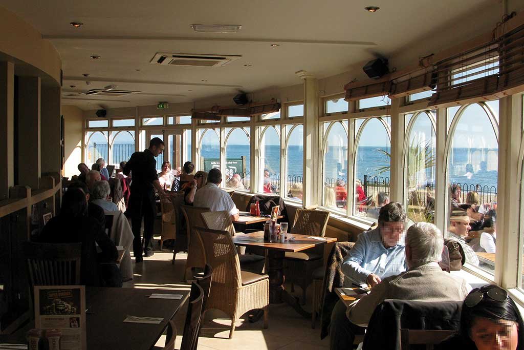 There is an RNLI lifeguard station. Other facilities include a new cafe/restaurant (Chineside), a Harvester pub, a beachfront take away cafe / ice cream kiosk, a beach shop, beach office and toilets. Access is via a sloping car park just off West Overcliff Drive or from walking along the promenade. Car park details and charges are given further down the page.