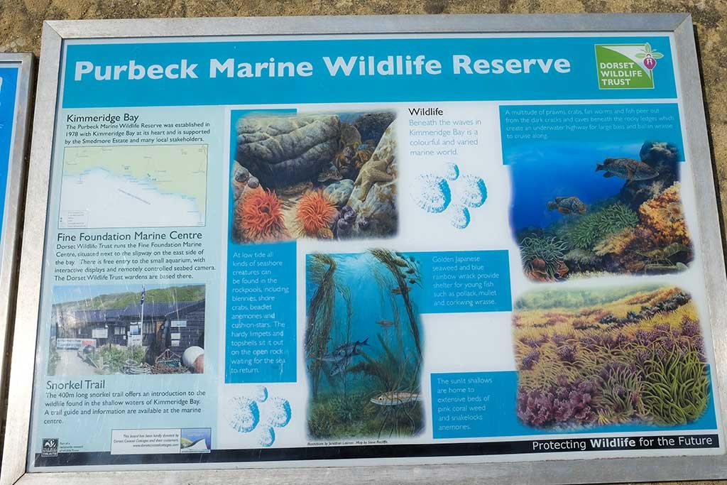 Kimmeridge Bay is situated on the Jurassic Coast about 7 miles west of Swanage and about 4.5 miles south of Wareham. It is recognised as an Area of Outstanding Natural Beauty. The semi-circular bay is backed by low cliffs of Kimmeridge clay and the shore comprises of stony shingle upon a wave-cut rock platform with rock pools. It’s these pools and ledges that attract the kids (and their parents) searching for all kinds of interesting marine-life. In the summer there is also an underwater snorkel trail. Information about the snorkel trail can be found at the Wild Seas Centre https://www.dorsetwildlifetrust.org.uk/wild-seas-centre located near the slipway on the left of the beach. It’s free to enter and has interesting interactive displays, exhibitions and a small aquarium. It’s possible to hire masks and snorkels here for a small charge.