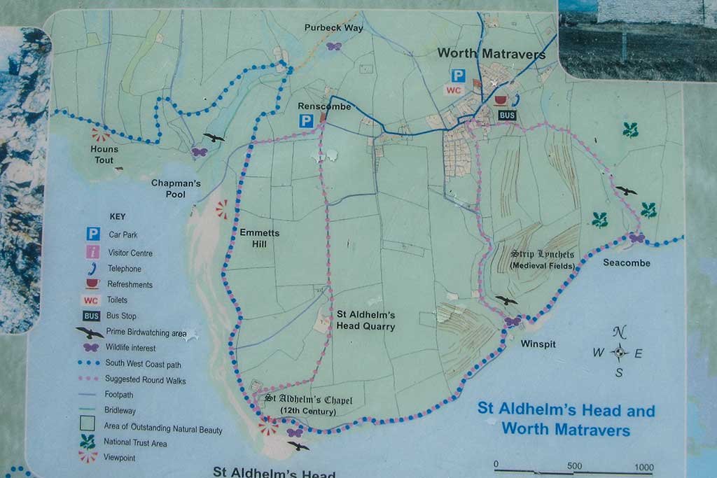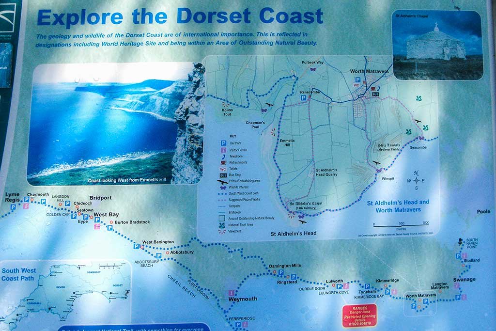 Worth Matravers is popular with tourists and walkers in the summer months. The village lies just a few miles from the South West Coast Path and the UNESCO Jurassic Coast. It is the start of several excellent circular walks including trails to the cliff top quarries at Winspit and Seacombe. A walk out to St Aldhelm’s Head and Chapman’s Pool also offer superb coastal views. In the car park you’ll find some tourist information and useful maps showing the most popular walks. I’ve included photos of this information below that I’m sure you’ll find useful.